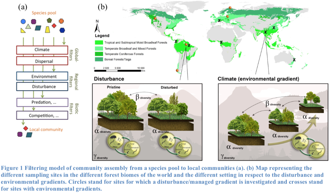 - Produire la première description biogéographique globale des réseaux de cooccurrence plante-sol couvrant un écosystème majeur (c.-à-d. les forêts).