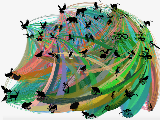 Nous cherchons à mieux comprendre les interactions biotiques, leur prévalence et leur importance globales, leur nature (positive ou négative, intensité), leur impact fonctionnel sur l’écosystème, leur dynamique temporelle et leur dépendance vis-à-vis du contexte. Nous nous appuyons sur des combinaisons d’expériences et de données d’observation empiriques à long terme (résaux bipartite, ex. : plante-pollinisateur ou plante-herbivore) avec des modèles Lotka-Volterra et des analyses statistiques de réseaux pour identifier les points de basculement et les changements de trajectoire des réseaux d’interaction bipartites ou tripartites. Nous analysons la structure et la distribution spatiale des réseaux d’interaction complexes et nous nous demandons si nous pouvons prédire les interactions à partir des caractéristiques et du comportement des espèces, comment l’environnement passé et actuel influence la structure spatiale des réseaux, comment et pourquoi certaines espèces sont centrales dans les réseaux et enfin comment quantifier le flux de matière à travers le réseau. Nous nous appuyons sur nos données européennes sur les vertébrés qui résument la répartition spatiale de tous les vertébrés ainsi que leurs caractéristiques, leurs relations phylogénétiques et leurs interactions trophiques connues. Nous utilisons l’intelligence artificielle pour reconstruire les réseaux d’interaction à partir de l’ADN environnemental prélevé dans le sol pour ORCHAMP (MIAI@GrenobleAlpes) et étudions leur distribution et leur diversité le long de gradients environnementaux.