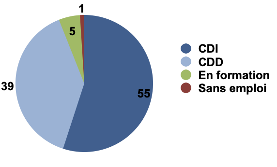94 % des diplômés trouvent un emploi (enquête sur les promotions 2004 à 2017, taux de réponse 70 %)